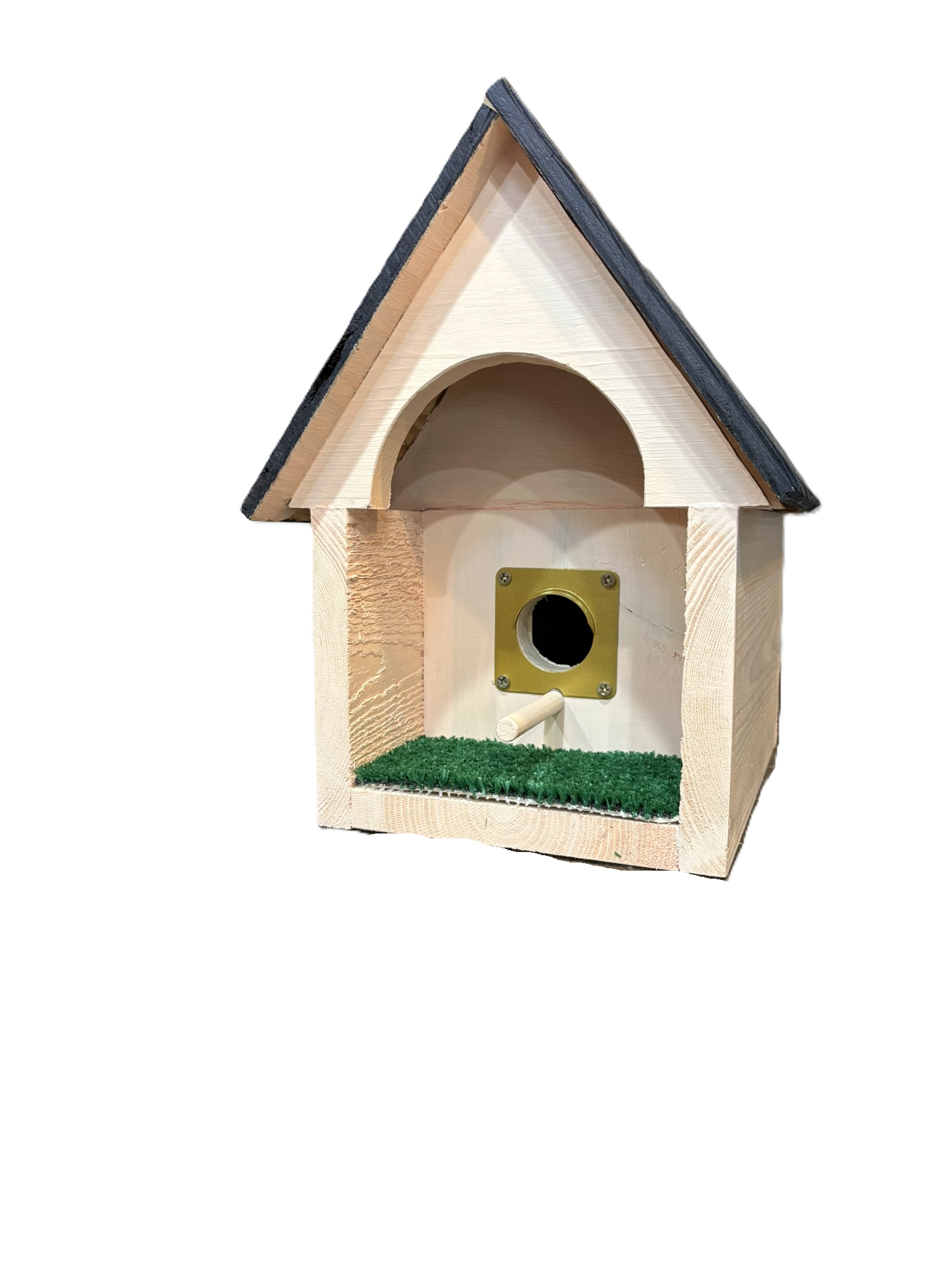 I made this one with a porch and removeable grass. A little out of the wind for the Momma and warmer for the baby birds.